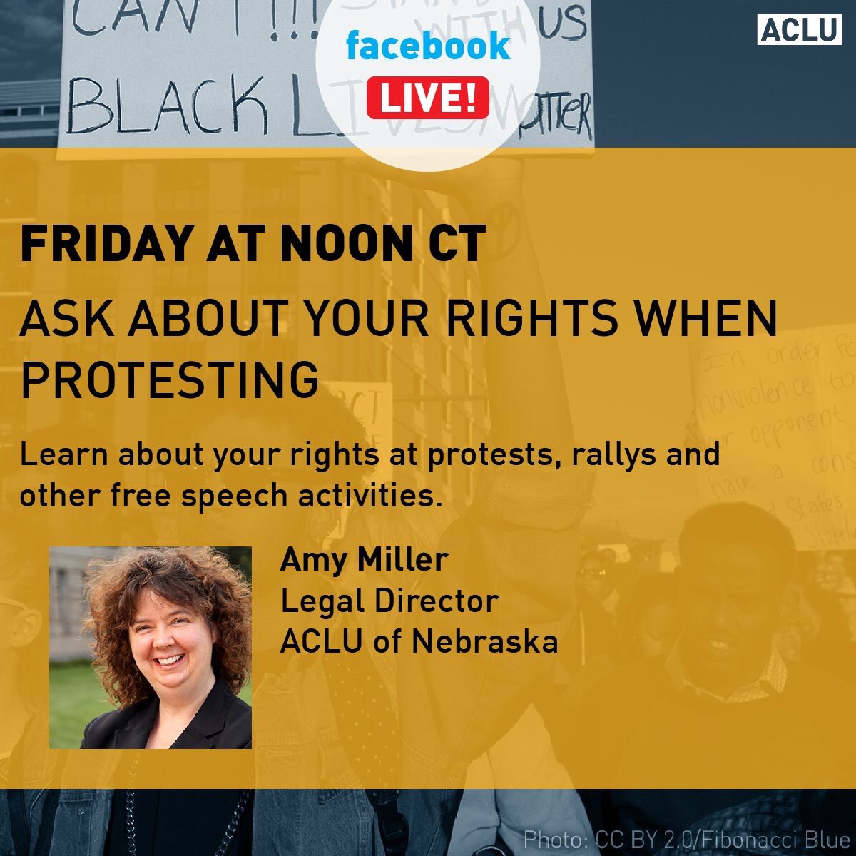 Tomorrow, Dec 16, 12pm CT/11am MT head over to Facebook for a live convo on protest rights. #FirstAmendment #freespeechpic.twitter.com/I33F4tgn1G