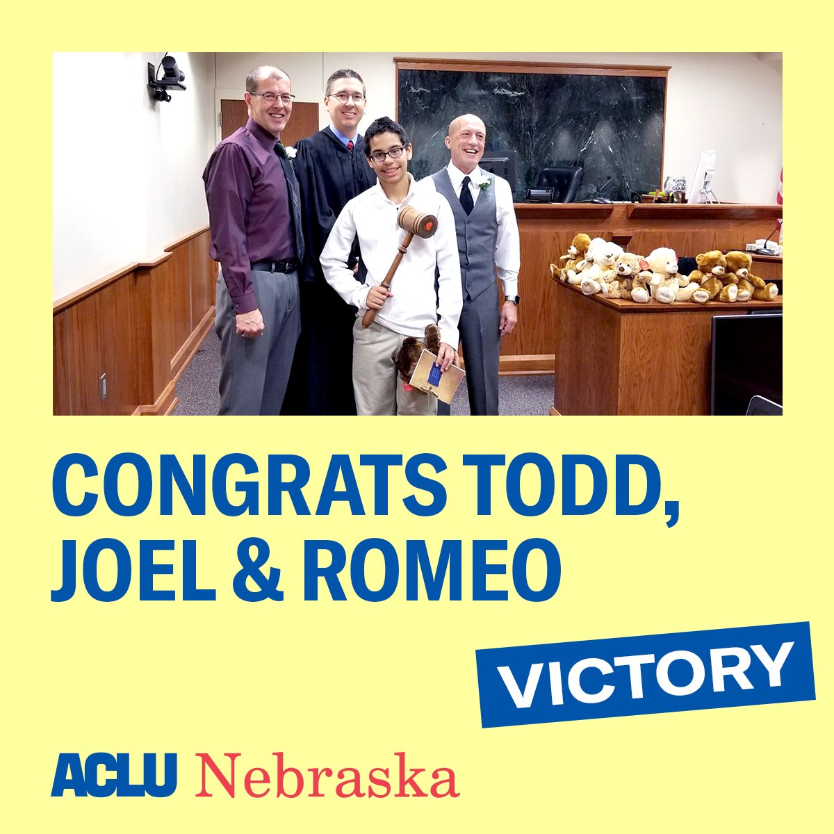 Today Todd & Joel adopted Romeo, one of their first foster children, nearly a decade after first fighting Nebraska's ban on gay & lesbian foster parents.