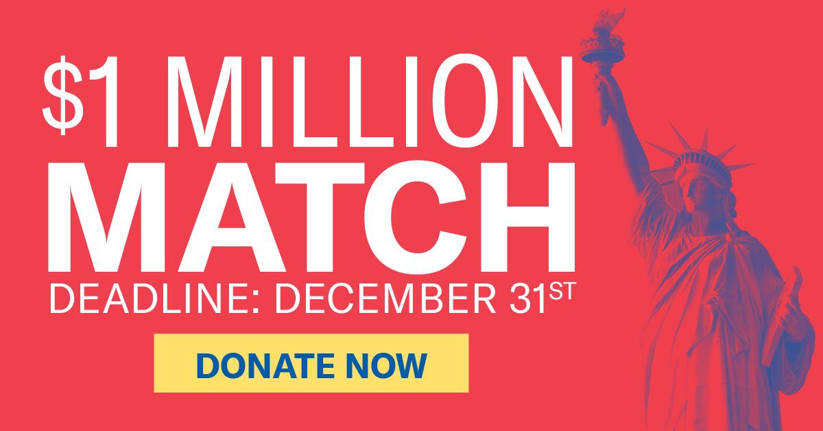 $1 Million Match: Your year-end ACLU donation will be matched dollar-for-dollar. Fight back twice as hard: your gift to ACLU will be doubled if you donate now. http://aclu.org/MatchMyGift pic.twitter.com/RQYUKZTOe9