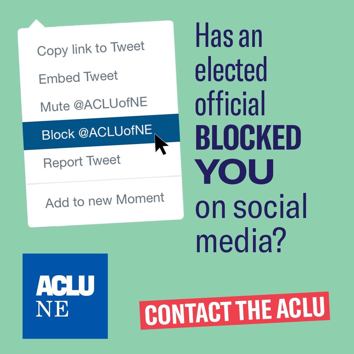 We’ve heard from a few Nebraskans who are concerned about being blocked on social media by an elected official or government agency. Contact us if this has happened to you. Contact us: http://aclunebraska.org/gethelp pic.twitter.com/NteL4v5iCD
