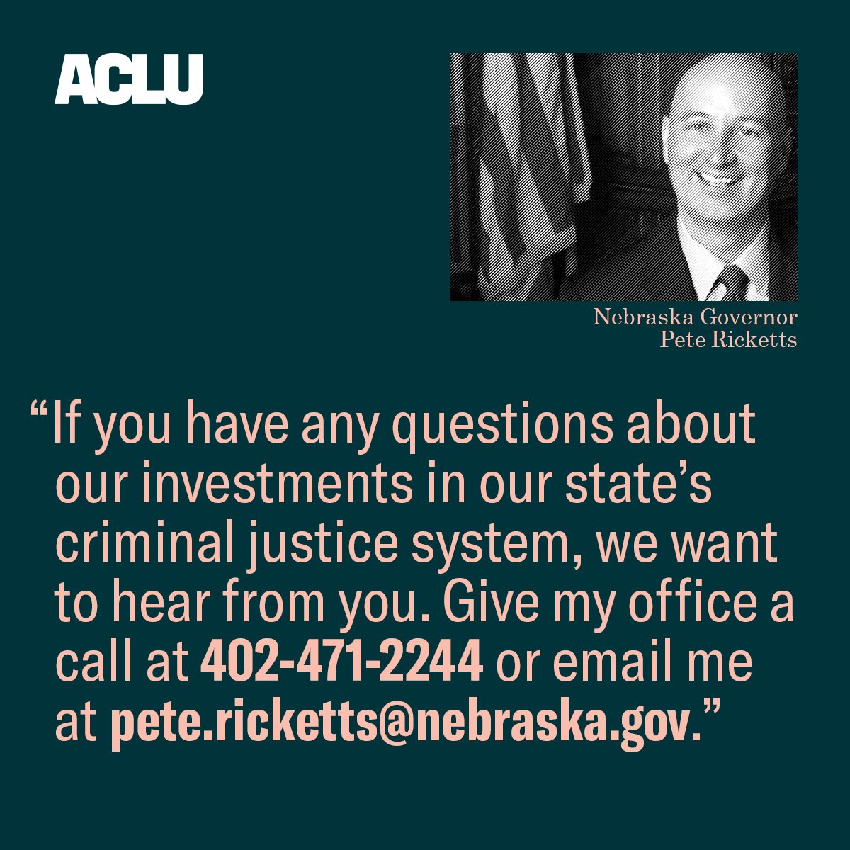 Today, @GovRicketts invited Nebraskans with "questions about our investments in our state’s criminal justice system" to contact him. Please do. #PrisonReform