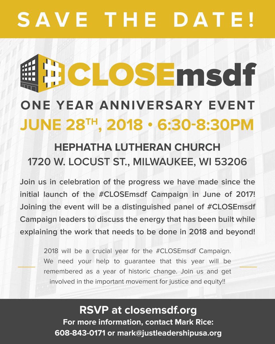 Join in the celebration of the progress that has been made since the initial launch of the close the Milwaukee Secure Detention Facility Campaign in June of 2017! #CLOSEmsdf