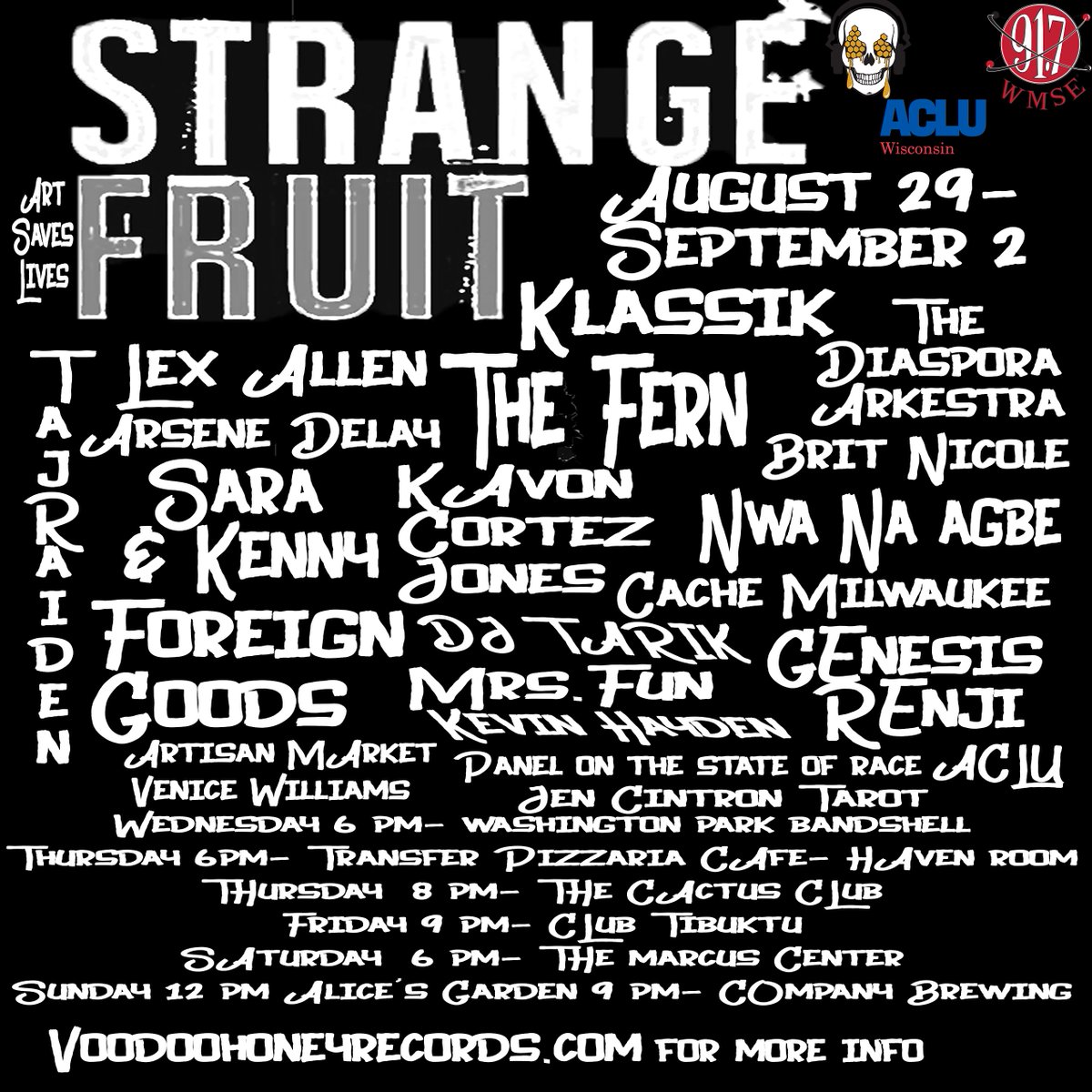 We will be in attendance tonight at the third annual Strange Fruit Music Festival. The Festival will be presented from August 29th through September 2nd at various locations around the city of Milwaukee. For more information go to https://www.facebook.com/events/251547882342195/ …pic.twitter.com/BDVFjCz5jw