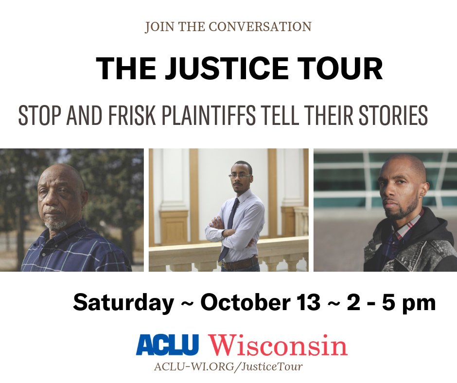 Support our mission to end race-based policing and mass incarceration in Wisconsin by attending the Justice Tour on October 13th. To register go to http://ACLU-WI.ORG/JusticeTour pic.twitter.com/DeB8vThcHL