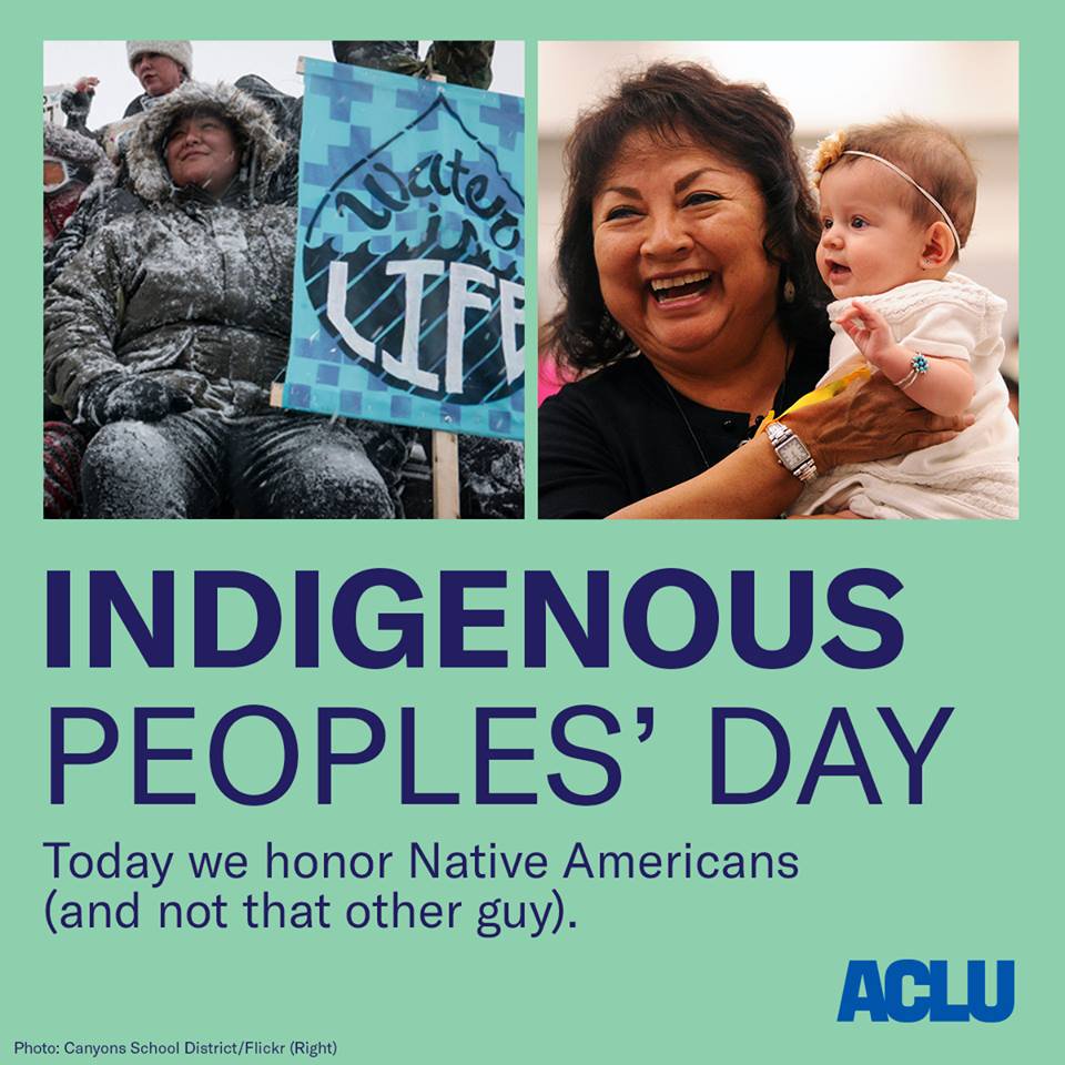 Happy Indigenous Peoples' Day from all of us at the ACLU.pic.twitter.com/c1Y297gLNS