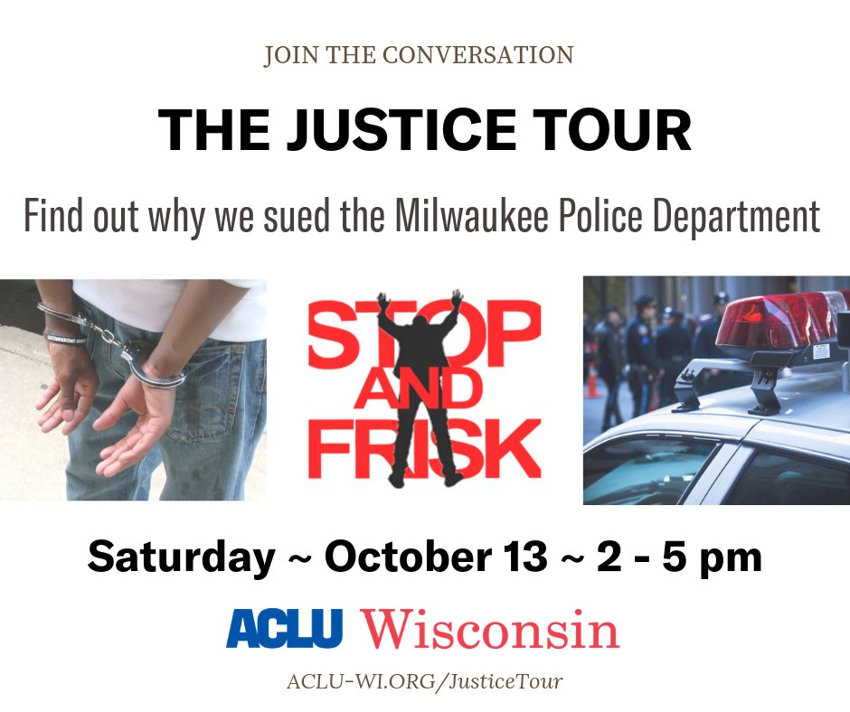 We invite you to attend the Justice Tour, where you can learn about what we've done to stop the MKE Police Department from targeting you because of your skin color. http://ACLU-WI.ORG/JusticeTour #JusticeTourMKEpic.twitter.com/U0xDbil2r2