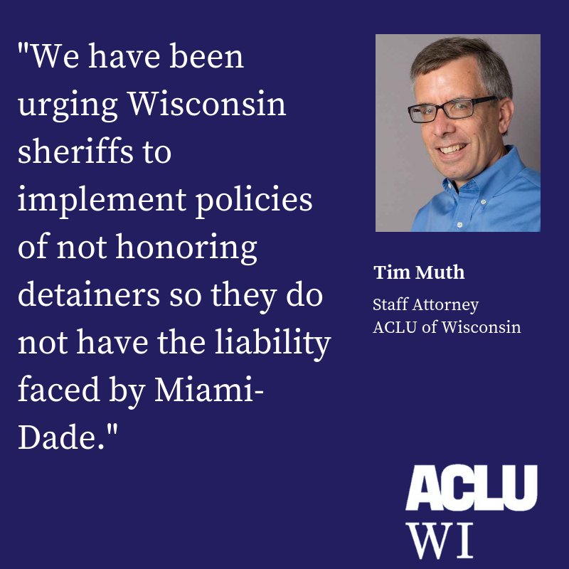 We have been urging Wisconsin sheriffs to implement policies of not honoring detainers so they do not have the liability faced by Miami-Dade. Read more here: https://www.aclufl.org/en/press-releases/federal-judge-rules-miami-dade-can-be-held-liable-ice-detainer-policy …pic.twitter.com/xFvuc3s1zC