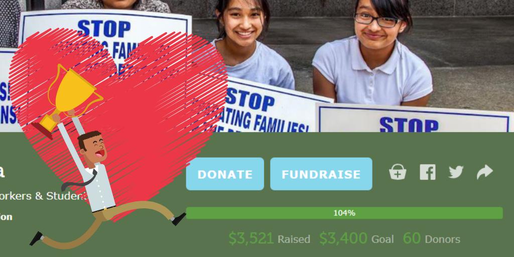 As entertained as we are by the fact that we've raised $2,424 during a 24-hour day of giving... we want to reach that fundraising goal!! Help us raise $3,400 before 11:59pm! Every dollar makes a difference in our fight for justice. ¡Adelante! #CSWBigSharepic.twitter.com/e9DfB7miCM
