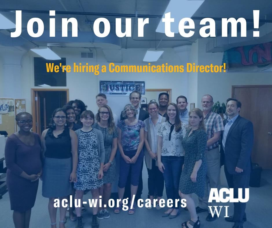 ACLU of Wisconsin is looking for a Communications Director! We invite those interested to apply.pic.twitter.com/EzmYP61Dq0