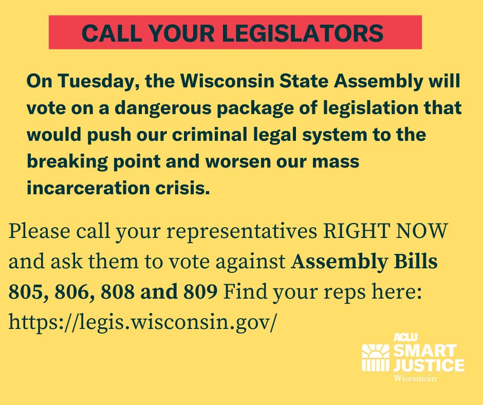 UPDATE: The Assembly will vote tomorrow on whether or not to pass a series of terrible bills that would exacerbate our mass incarceration crisis. They've fortunately pulled AB 807 out of consideration, but we need to keep the pressure on. Call your reps! https://legis.wisconsin.gov/ pic.twitter.com/GcAlR3n7C5