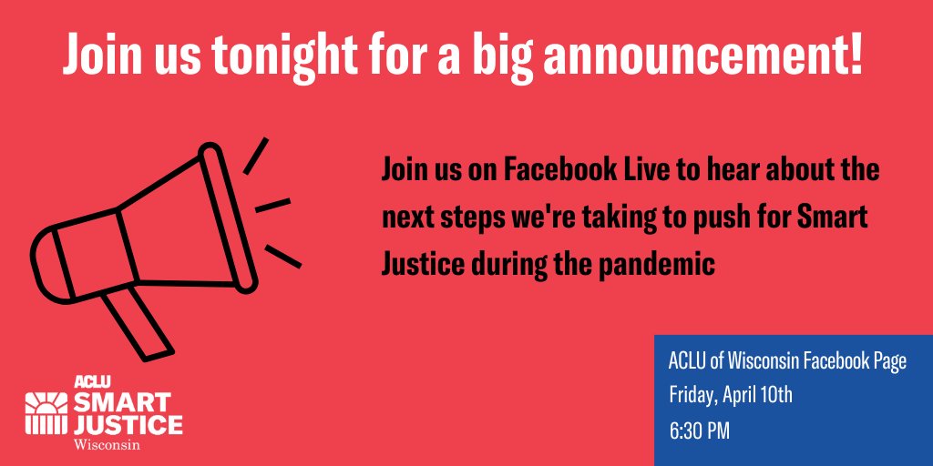 We’re live right now! Tune in! https://www.facebook.com/ACLUofWi/live/ https://twitter.com/ACLUofWisconsin/status/1248737406892888064 …