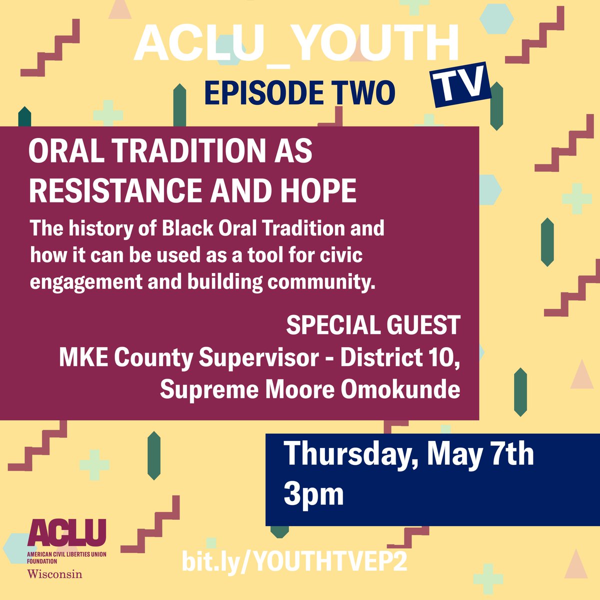 We invite high school students to join us tomorrow for another episode of youth TV, where we will be discussing the history of Black Oral Tradition and how it can be used as a tool for civic engagement and building community. You can register here: http://bit.ly/YOUTHTVEP2 .pic.twitter.com/3ioRVXAMl3