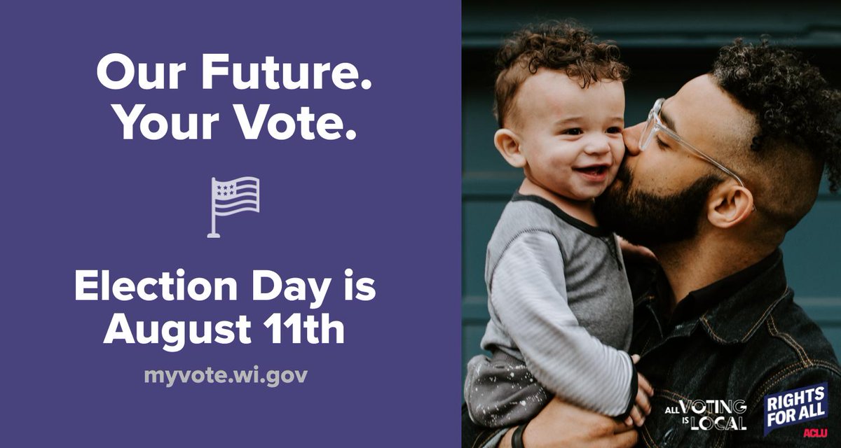 Our vote is our voice! The August 11th primary is on Tuesday, and we encourage you to drop your absentee ballots off at a nearby drop box or at your local clerk's office. You can also vote at the polls in-person on Tuesday. Visit http://myvote.wi.gov for more details.pic.twitter.com/PoxOyKzy8I