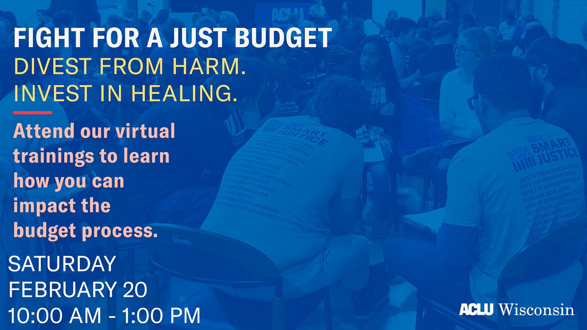 The ACLU of Wisconsin, with your help, will be ready to be a voice in the upcoming state budget debates! We want to make sure that elected officials know what we – their constituents - want out of the next Wisconsin Budget. Register here: https://action.aclu.org/webform/wi-budget-training …pic.twitter.com/CzVpdjwf4a