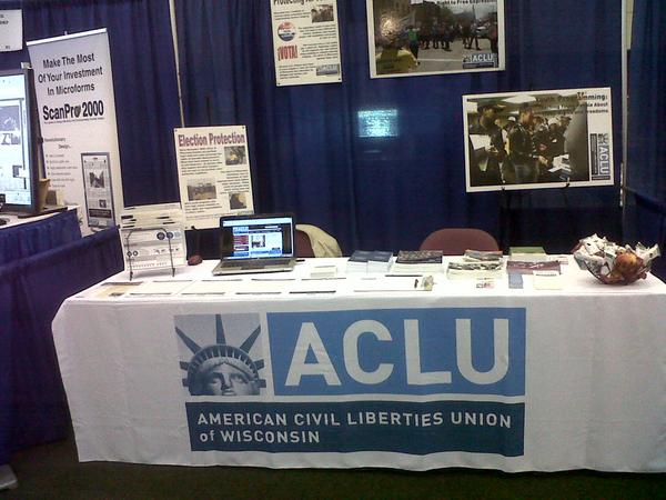 Librarians protect your right to read! Here's the @ACLUofWisconsin info hub at the @WisconsinLibs #WLA12 conference.pic.twitter.com/A5POb1sh