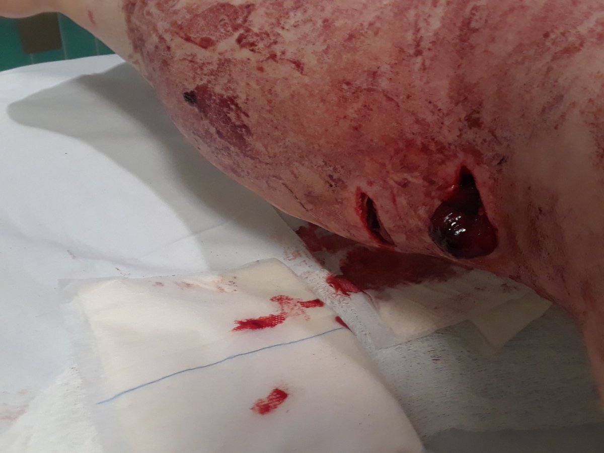 This is what I got from a police dog who was Suppose to be chasing suspects...not attacking me!pic.twitter.com/v22wc7tip9