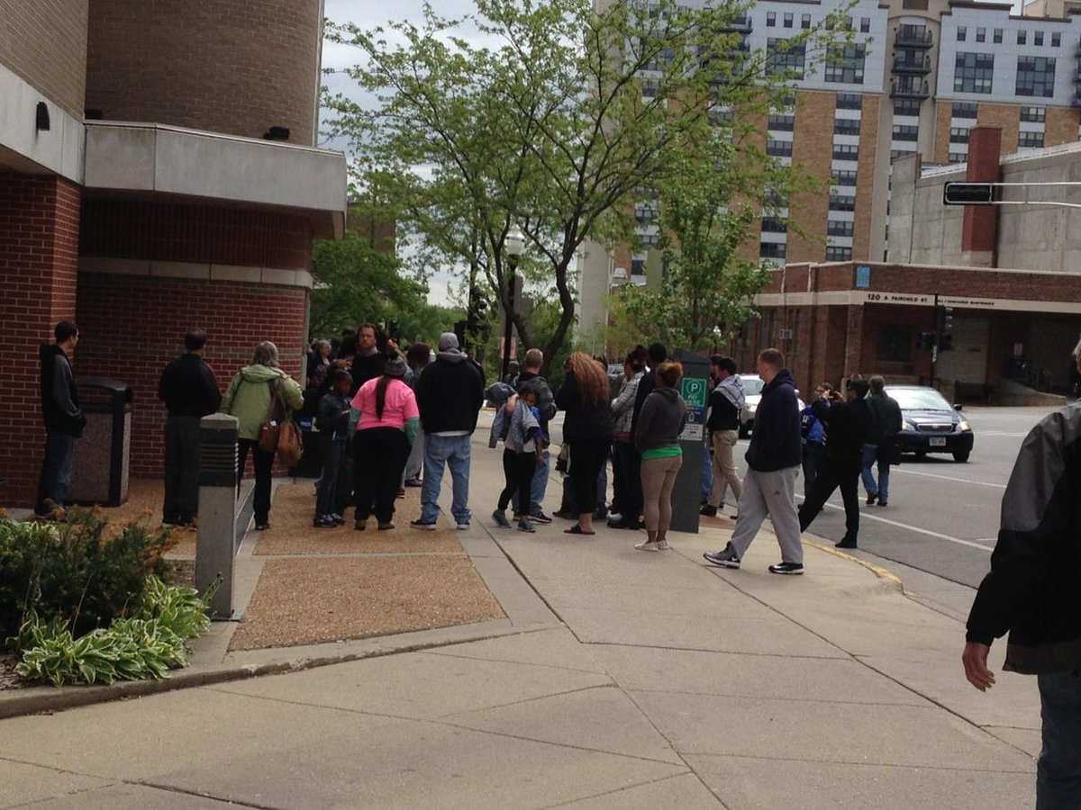 Crowd outside public safety building disappointed by non charging of officer in #tonyrobinson shootingpic.twitter.com/WUFStrnxdS