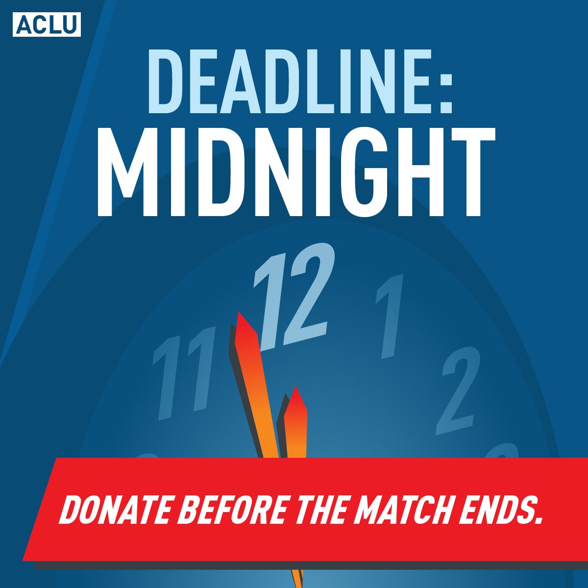 Time is running out. Donate now and your gift will be matched dollar for dollar: http://aclu.org/matchTW pic.twitter.com/KXjfEzyvTl