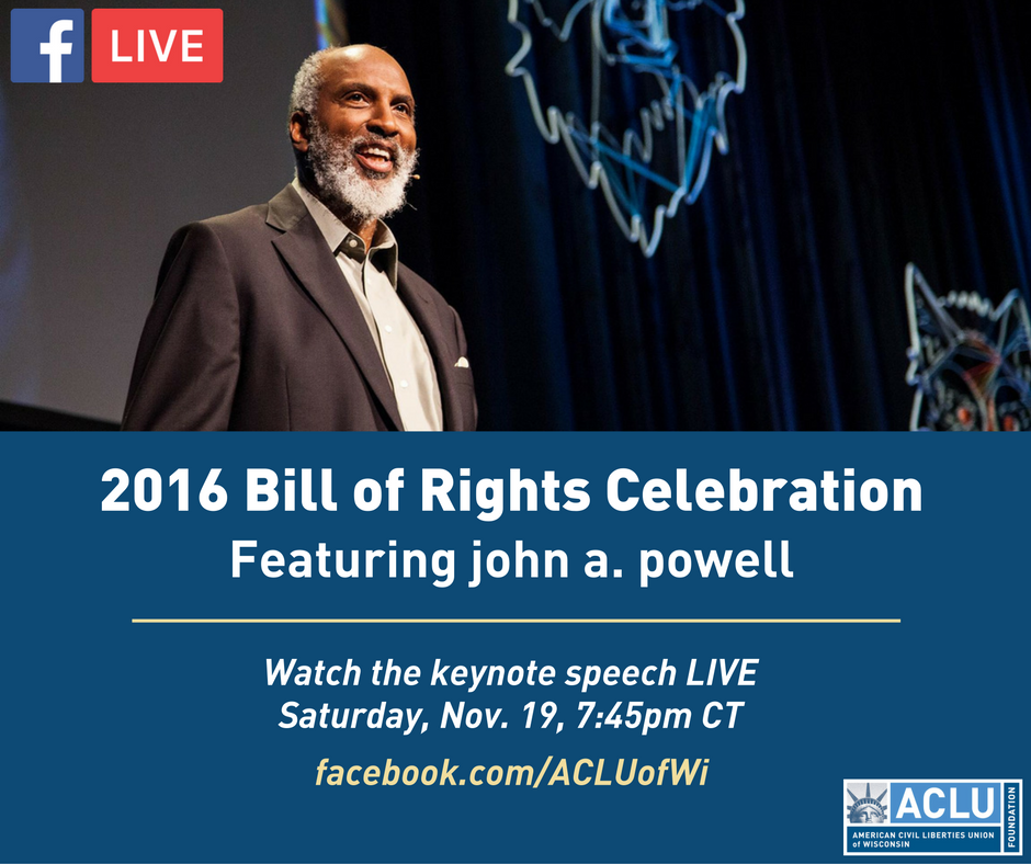 Can't be at the Bill of Rights Celebration? Catch the keynote speech live on Facebook! Tune in tomorrow at 7:45pm CT https://www.facebook.com/ACLUofWi/ pic.twitter.com/M98SLyWciG