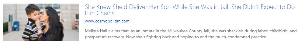 @Cosmopolitan profiles woman in Milwaukee Jail who was shackled during labor, childbirth, postpartum recovery. http://www.cosmopolitan.com/politics/a13034685/pregnancy-prison-childbirth-chains/ …pic.twitter.com/hZA1ulF46p