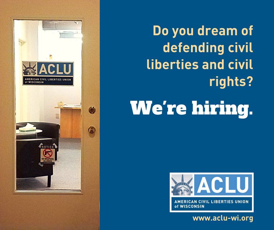 Join the fight for our civil liberties and civil rights! The ACLU of Wisconsin is looking for a part-time finance manager: http://aclu-wi.org/about-us/jobs pic.twitter.com/bZxvhNZNob