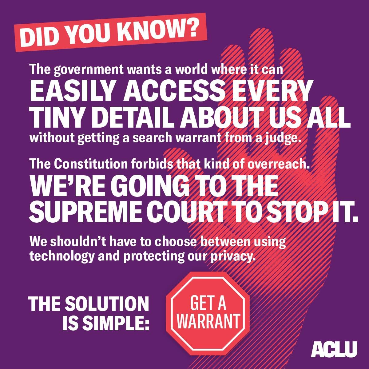 If the government wants to pry into your personal cellphone data, it should #getawarrant. Here's what's at stake in the case we're arguing before #SCOTUS today: https://www.aclu.org/blog/privacy-technology/location-tracking/right-keep-personal-data-private-carpenter-v-us …pic.twitter.com/2Z56RddDqb