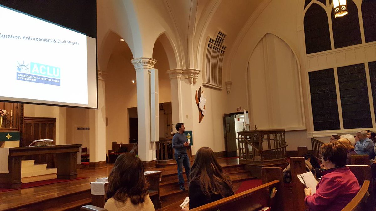 Emilio De Torre, ACLU director of community engagement is giving a presentation this morning in English and Spanish on immigration rights in Green Bay. Join us: https://www.facebook.com/events/154117688563591/?ti=cl …pic.twitter.com/izQfQXFG4r