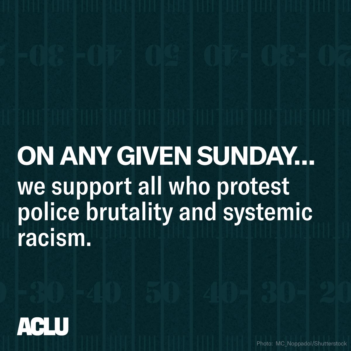 The ACLU supports all who protest police brutality and systemic racism, not just today but on any given Sunday and every day. #TakeAKnee #EaglesvsPatriotspic.twitter.com/9Pbo9OTZiX