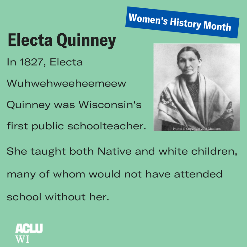 Today, for Women's History Month we honor a public school teacher that taught all students for free. Thank you, Electa Quinney, for leading the way in Wisconsin and becoming the first public school teacher in the state! #womenshistorymonthpic.twitter.com/QROCZDhsd1