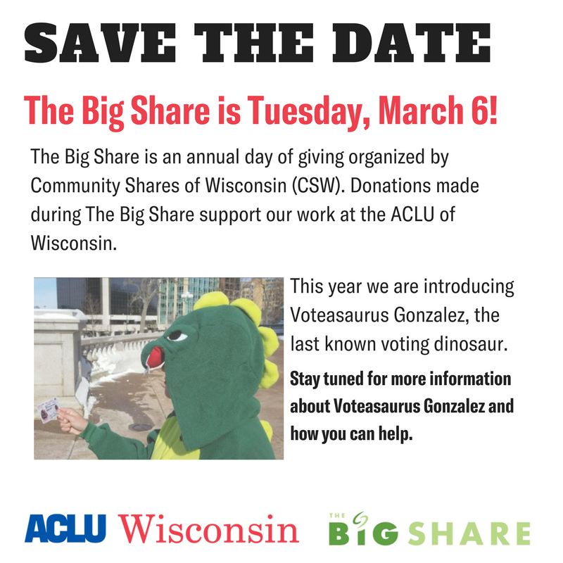The Big Share is almost here! It is an annual online day of giving. This year we are excited to introduce a special surprise guest, Voteasaurus Gonzalez! Stay tuned to learn more about the last known voting dinosaur and get ready to share, vote, and give. #CSWBigSharepic.twitter.com/q4GpPoR7x8