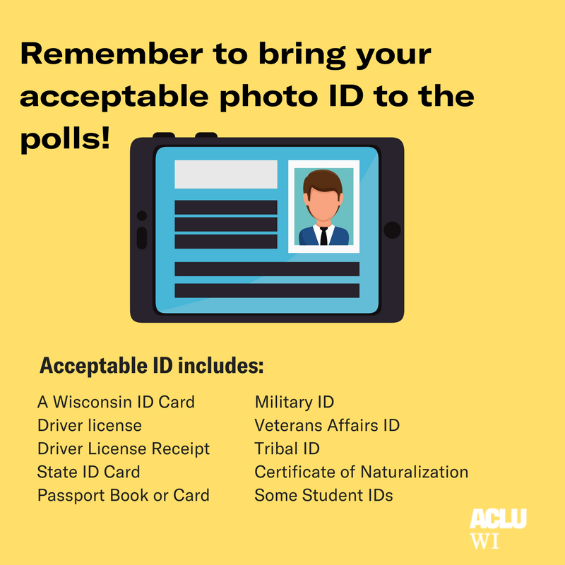 You'll need a Wisconsin photo ID to vote in person on Election Day. More information here: http://www.aclu-wi.org/story/top-10-voter-id-questions … #WIVotespic.twitter.com/hLoMDLVOmj