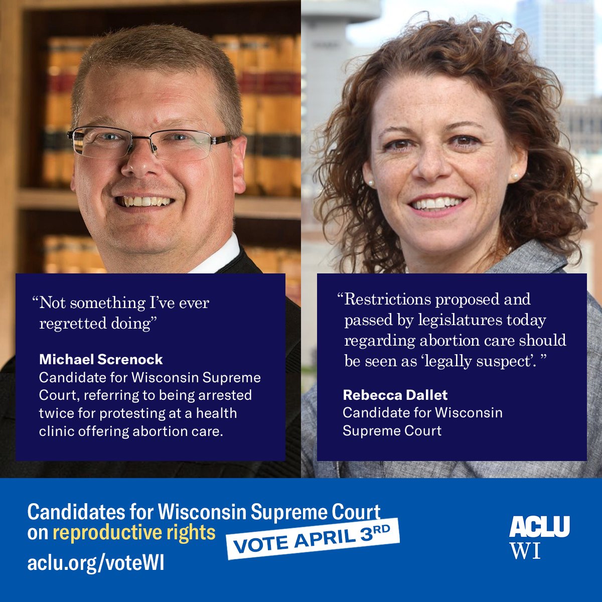 On April 3, cast an informed vote for Wisconsin's Supreme Court candidates. http://aclu.org/votewi pic.twitter.com/BuK6xTGRjl