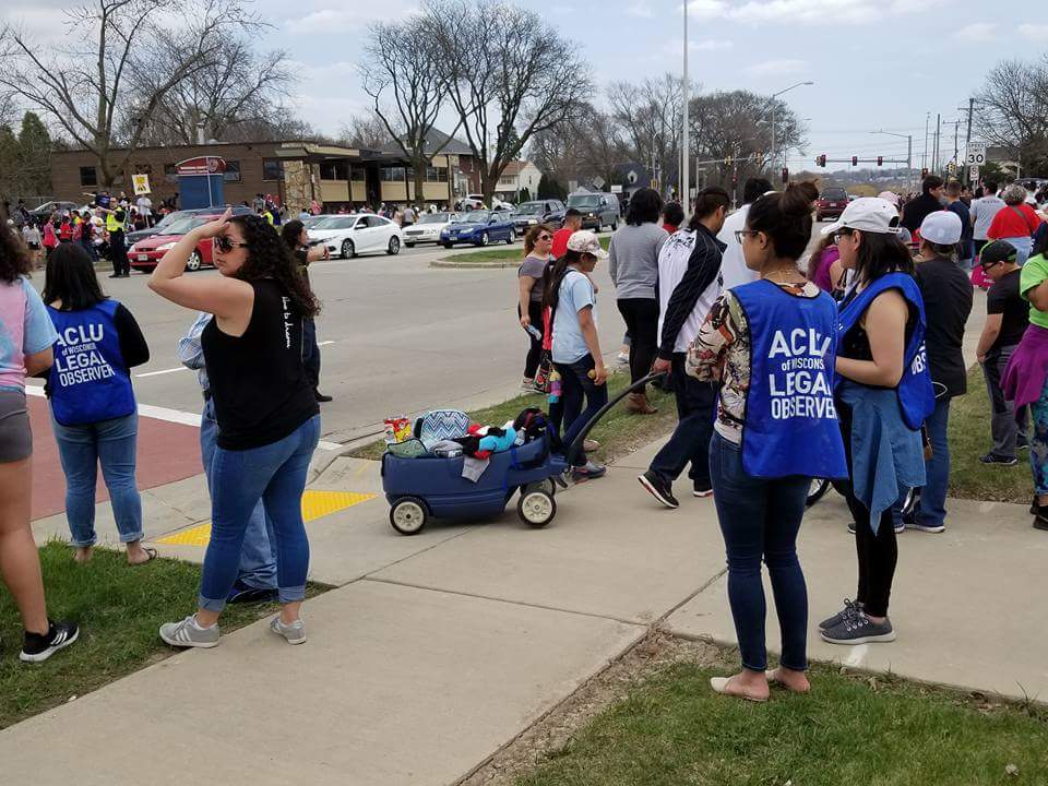 The ACLU legal observed the immigration rights march in Waukesha today to protect the free speech rights of the demonstrators. #MayDaypic.twitter.com/VrrcqsmHbR