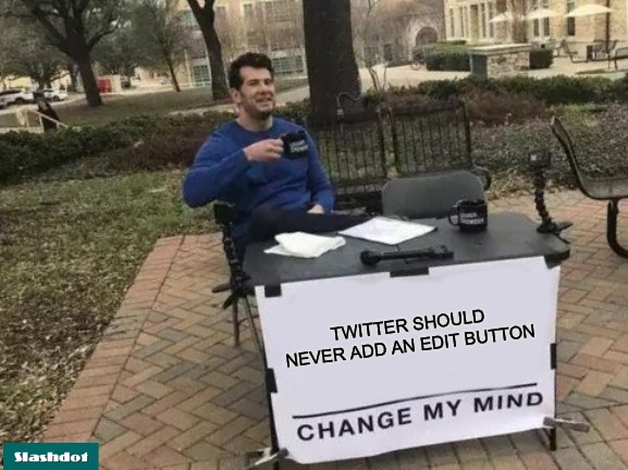Twitter should NEVER add an edit button. You can't change my mind. With