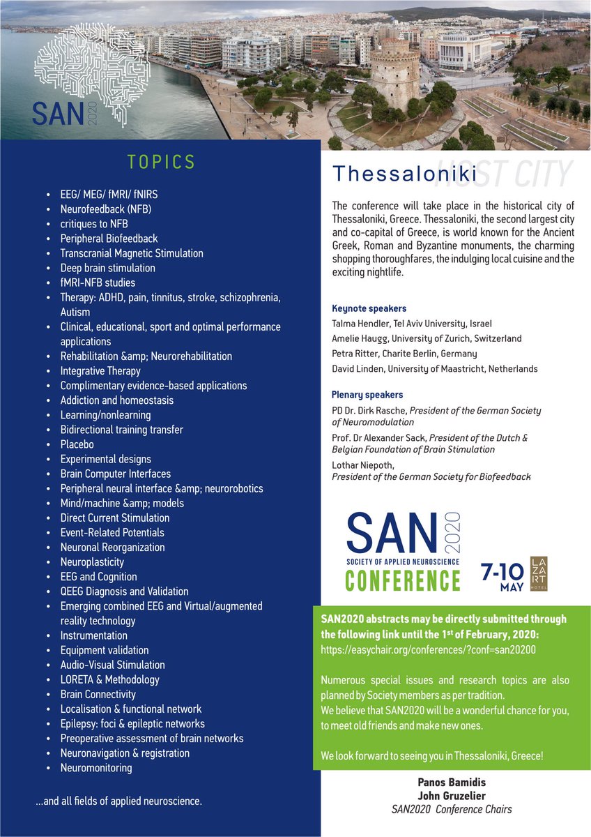 #san2020 is open! We are looking forward to meet you in#Thessaloniki. Great keynotes & plenaries on#applied#neuroscience state-of-the-art and future! Info & submissions at http://san2020.org .#appliedneuroscience#AcademicTwitterpic.twitter.com/2VupsH8T79