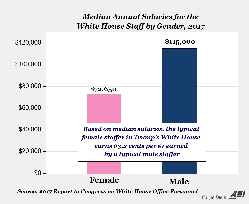 Based on median salaries, gender pay gap at Trump White House is almost 2X (37%) what the media are reporting (20%) http://ow.ly/h8zw30dmobu pic.twitter.com/QdJ7pBERZd