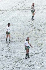 Snowing at the footy