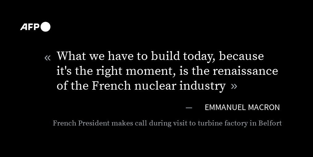 #UPDATE President Emmanuel Macron has called for a "renaissance" for the French nuclear industry, saying he wanted up to 14 new reactors to power the country's transition away from fossil fuels http://u.afp.com/wgUZ pic.twitter.com/141POVg1Et