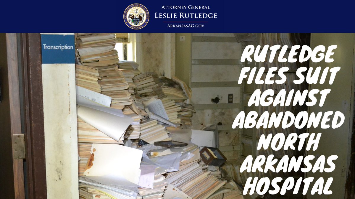 Rutledge Sues Defunct Eastern Ozark Hospital for Failing to Protect Patient & Employee Files For Nine Years: http://arkansasag.gov/news_releases/rutledge-sues-defunct-eastern-ozark-hospital-for-failing-to-protect-patient-employee-files-for-nine-years/ …pic.twitter.com/T5f75hNR4j