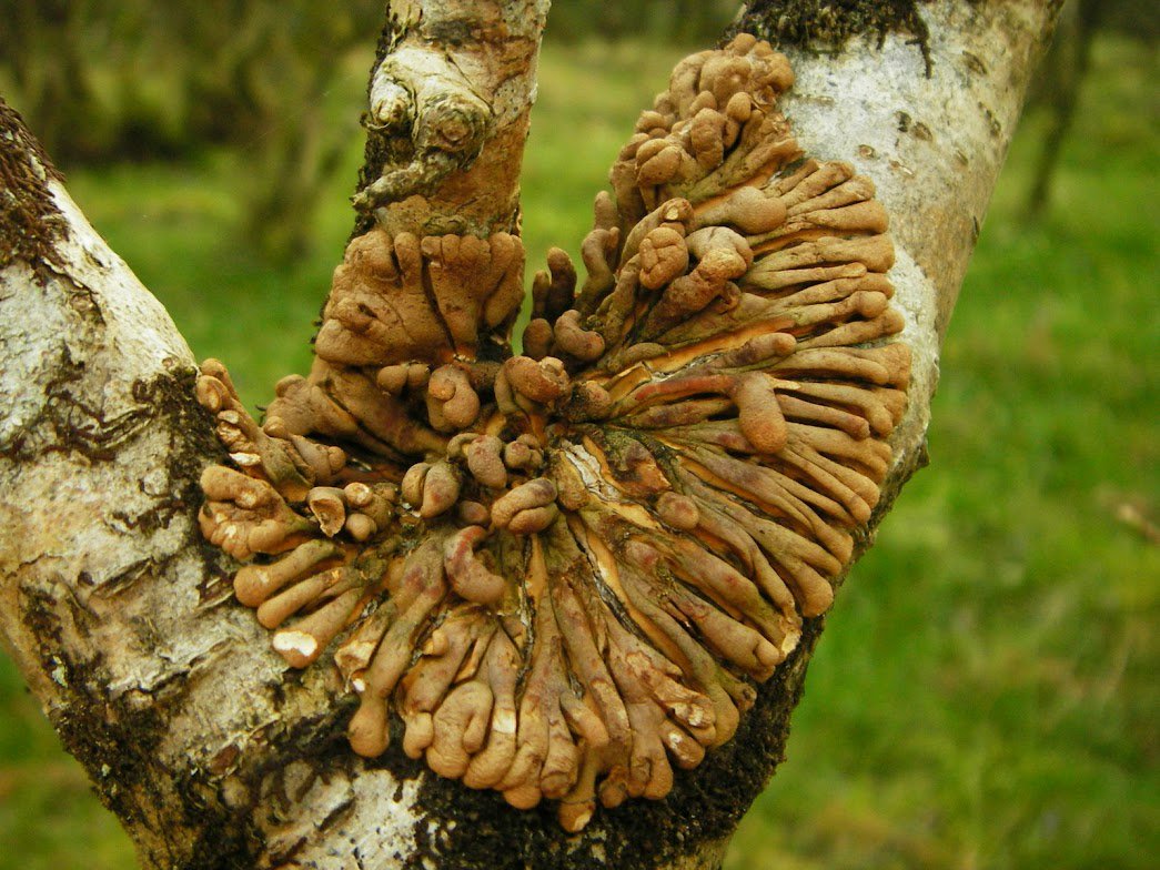 Atlantic hazelwoods along Scotland’s west coast support the glue fungus, which captures twigs and branches in the canopy. The equally strange Hazel Gloves lives on the glue fungus. Here's a video about our work with this
