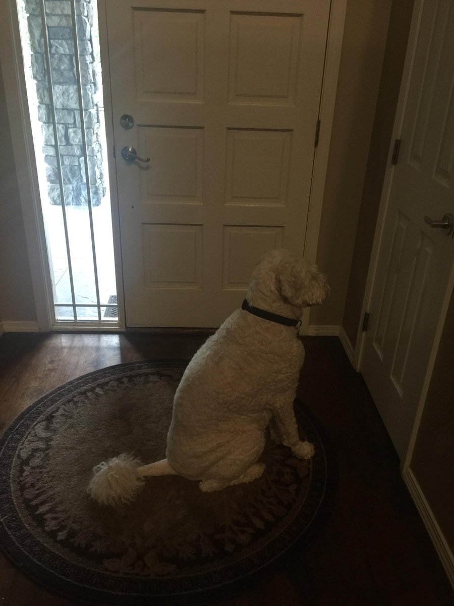 My blind dog was waiting for mom at the wrong door. Bless his heart.pic.twitter.com/06lvKbKW3v