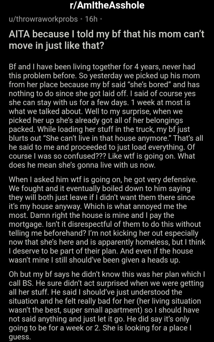 AITA because I told my bf that his mom can’t move in just like that? https://bit.ly/2Mqle8W pic.twitter.com/kohiRtyJg1