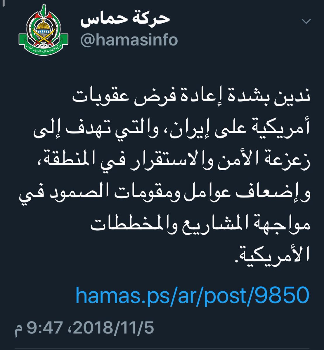 الدور الحقيقي لحركة حماس الاخوانية !! يعني دعم ايران للإرهاب في المملكة والبحرين واحتلال سوريا والعراق ولبنان لا يزعزع الإستقرار في المنطقة ؟!pic.twitter.com/vbxywO9rHl