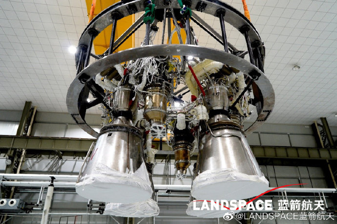 Looks like there is enough space in between the nozzles for hepta cluster engine. If they are using ZQ-2 in solely expendible configuration, I am sure they will rapidly iterate to fly a falcon-9 class vehicle in 2 years.
