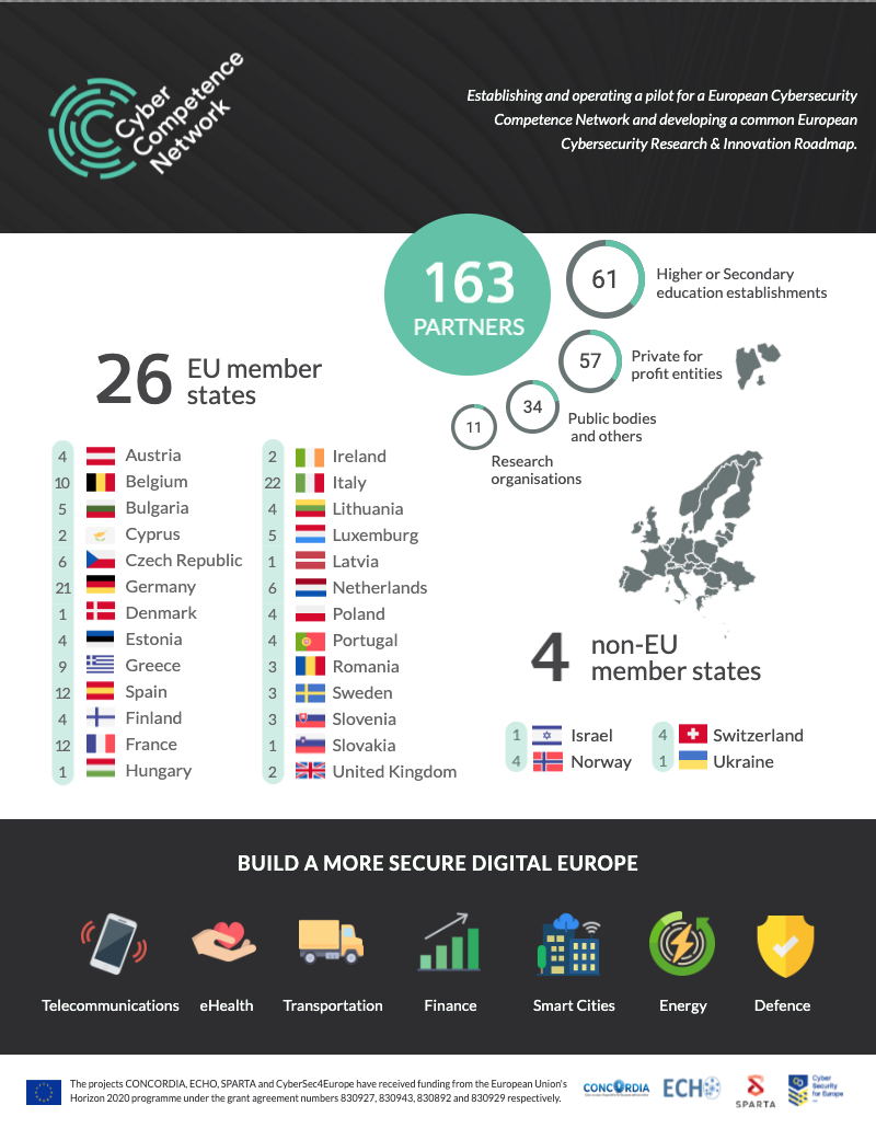 @concordiah2020@ECHOcybersec@sparta_eu and@CyberSec4Europe gather 163 partners, from 26 EU member States to establish and operate a pilot for a European Cybersecurity Competence Network and develop a common European Cybersecurity Research and Innovation Roadmap.#cybersecuritypic.twitter.com/TPnwxnTJOM