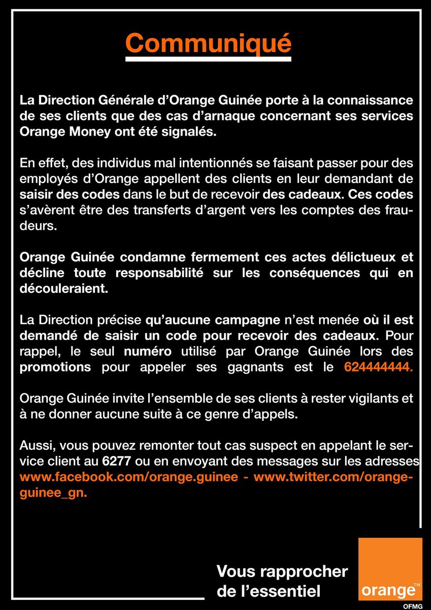 des gens qui se faisaient passer pour Orange et demandaient aux clients de faire des transferts d'argent
