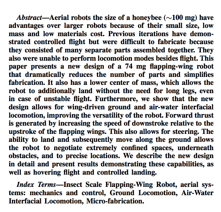 RoboFly: An insect-sized robot with simplified fabrication that is capable of flight, ground, and water surface locomotion "the new design allows for wing-driven ground and air-water interfacial locomotion" https://arxiv.org/abs/2001.02320 pic.twitter.com/3JPa6QkN3K
