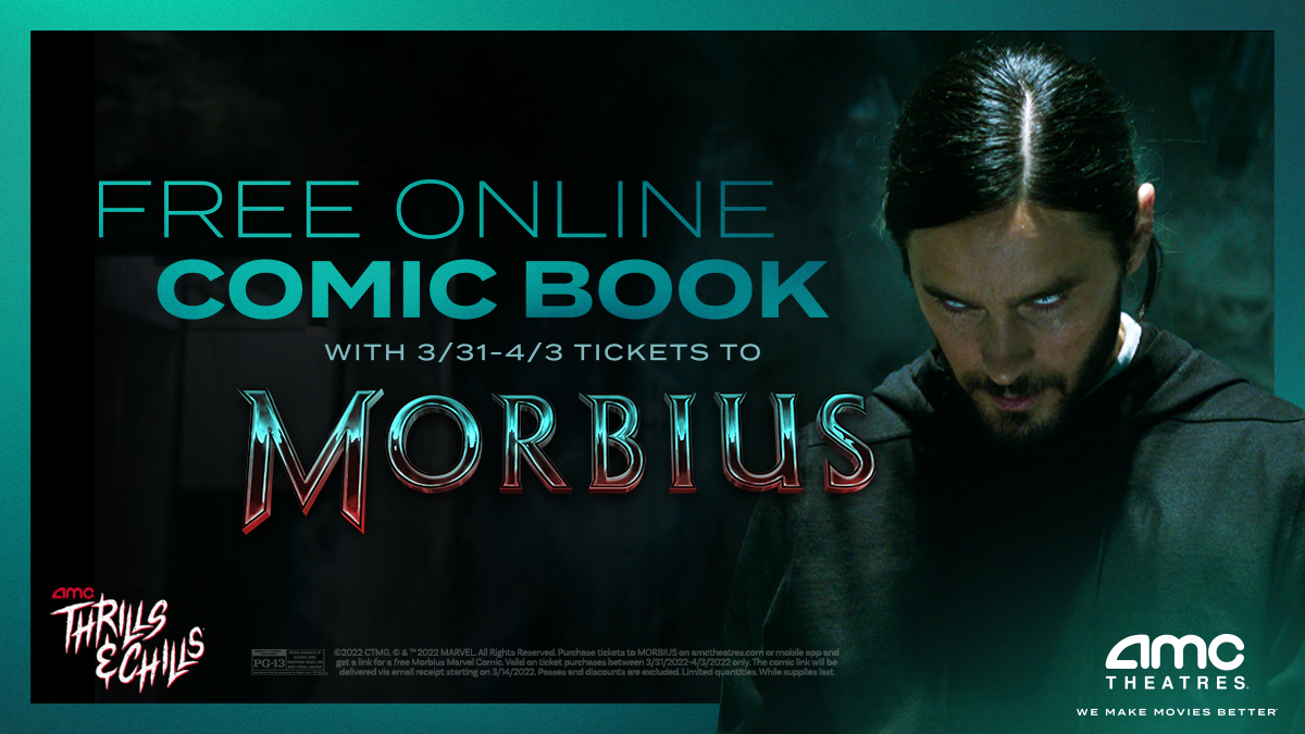 #MORBIUS and get a free digital comic book! Opening April 1st at#AMCTheatres: https://amc.film/3q2KBlc pic.twitter.com/8RF6v4F4Yd