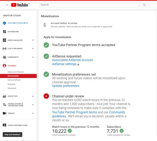 @TeamYouTube @YTCreators @YouTube Dear Youtube Team,  According to YouTube policy a user must have 4000 watch hours and 1000 subscribers to enable monetization, As I have already reached 10000 Watch hours and also completed my 7500 Subscribers: https://www.youtube.com/channel/UCsHP_XLrtxQaFJkUU7pzN0g …pic.twitter.com/4SjHCDLhwE