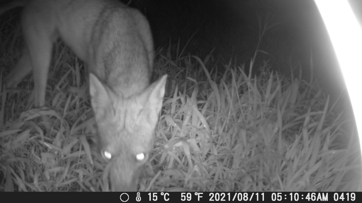 Seguimiento y monitoreo de las áreas experimentales a través de las cámaras trampa, finca La Rinconada, instaladas hace 3 meses. Se observó la presencia de un mamífero, el coyote (Canis latrans), de día y de noche.